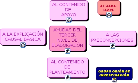 ayudas3, ayudas del tercer nivel de elaboración, a la explicación causal básica, a las preconcepciones, al mapa- llave, al contenido de apoyo, al contenido de planteamiento, grupo orión de investigación