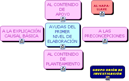 ayudas1, ayudas del primer nivel de elaboración, a la explicación causal básica, a las preconcepciones, al contenido de apoyo, al contenido de planteamiento, al mapa- llave, grupo orión de investigación