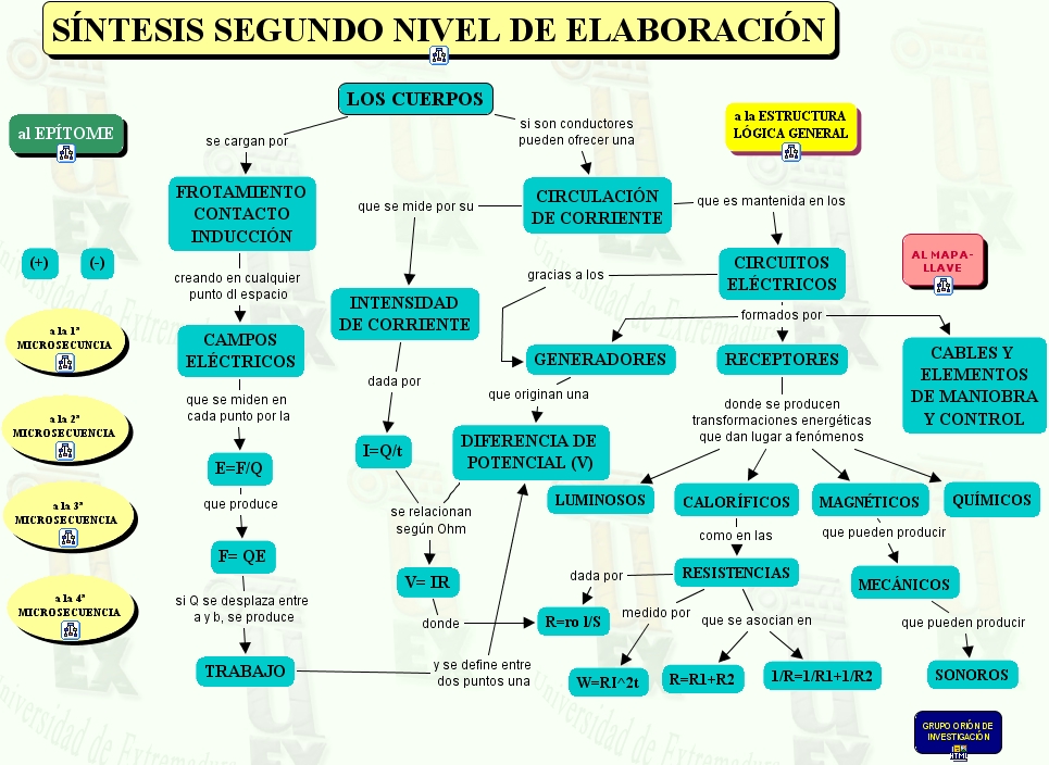 2sintesis, a la 2ª microsecuencia, receptores, resistencias, ( ), (-), a la 1ª microsecuncia, campos eléctricos, mecánicos, r=ro l s, r=r1 r2, a la 3ª microsecuencia , e=f q, químicos, caloríficos, a la 4ª microsecuencia, magnéticos, diferencia de potencial (v), circulación de corriente, cables y elementos de maniobra y control, grupo orión de investigación, 1 r=1 r1 1 r2, frotamiento contacto inducción, al epítome, síntesis segundo nivel de elaboración, sonoros, w=ri^2t, f= qe, intensidad de corriente, a la estructura lógica general, luminosos, al mapa- llave, v= ir, circuitos eléctricos, trabajo, generadores, los cuerpos, i=q t