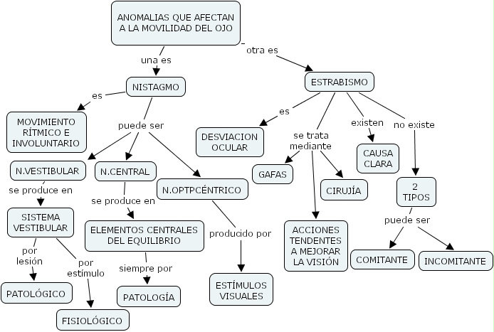 ANOMALIAS una NISTAGMO,ANOMALIAS otra ESTRABISMO,ANOMALIAS una NISTAGMO,N.CENTRAL se ELEMENTOS ,ESTRABISMO se GAFAS,ELEMENTOS siempre PATOLOGÍA,NISTAGMO es MOVIMIENTO ,N.VESTIBULAR se SISTEMA ,SISTEMA por FISIOLÓGICO,N.OPTPCÉNTRICO producido ESTÍMULOS ,SISTEMA por FISIOLÓGICO,ESTRABISMO existen CAUSA ,ESTRABISMO es DESVIACION ,2 puede COMITANTE,SISTEMA por PATOLÓGICO,ESTRABISMO no 2 ,ESTRABISMO no 2 ,NISTAGMO puede N.CENTRAL,N.OPTPCÉNTRICO producido ESTÍMULOS ,N.VESTIBULAR se SISTEMA ,ESTRABISMO es DESVIACION ,ELEMENTOS siempre PATOLOGÍA,ESTRABISMO existen CAUSA ,SISTEMA por PATOLÓGICO,NISTAGMO puede N.OPTPCÉNTRICO,NISTAGMO puede N.VESTIBULAR,ANOMALIAS otra ESTRABISMO,N.CENTRAL se ELEMENTOS ,2 puede COMITANTE,NISTAGMO es MOVIMIENTO ,2 puede INCOMITANTE,ESTRABISMO se CIRUJÍA,ESTRABISMO se ACCIONES