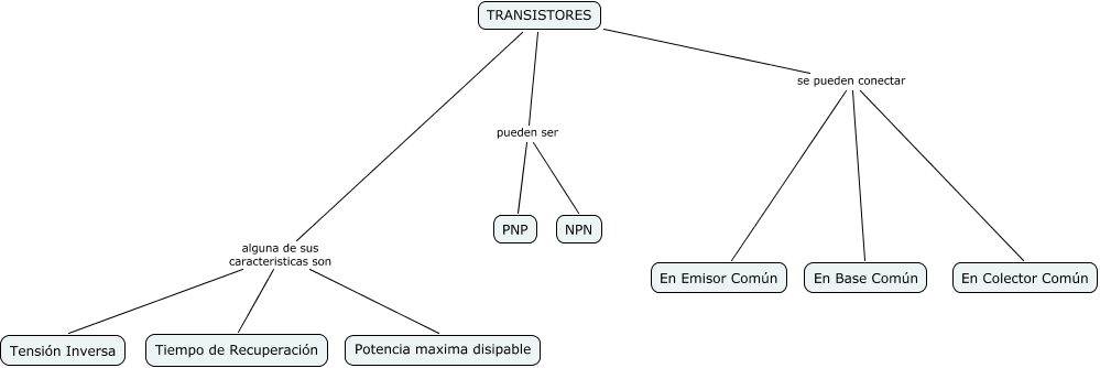 Copia de transistores , TRANSISTORES alguna de sus caracteristicas son Tiempo de Recuperación, TRANSISTORES alguna de sus caracteristicas son Potencia maxima disipable, TRANSISTORES se pueden conectar En Base Común, TRANSISTORES se pueden conectar En Colector Común, TRANSISTORES pueden ser NPN, TRANSISTORES pueden ser PNP, TRANSISTORES se pueden conectar En Emisor Común, TRANSISTORES alguna de sus caracteristicas son Tensión Inversa