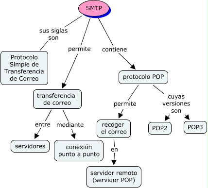 Este Cmap, tiene información relacionada con: 6-SMTP, transferencia de correo entre servidores, SMTP contiene protocolo POP, SMTP permite transferencia de correo, protocolo POP permite recoger el correo, transferencia de correo mediante conexión punto a punto, recoger el correo en servidor remoto (servidor POP), protocolo POP cuyas versiones son POP3, SMTP sus siglas son Protocolo Simple de Transferencia de Correo, protocolo POP cuyas versiones son POP2