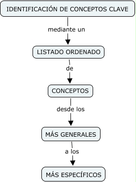 Este Cmap, tiene información relacionada con: mapas conceptuales (enlace3), LISTADO ORDENADO de CONCEPTOS, M�S GENERALES a los M�S ESPEC�FICOS, CONCEPTOS desde los M�S GENERALES, IDENTIFICACIÓN DE CONCEPTOS CLAVE mediante un LISTADO ORDENADO