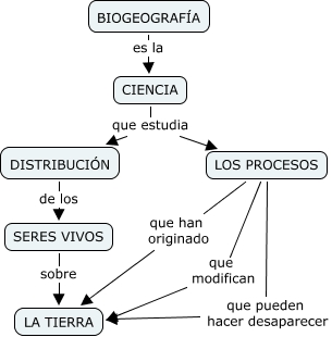 BIOGEOGRAF�A, SERES VIVOS sobre LA TIERRA, CIENCIA que estudia DISTRIBUCIÓN, CIENCIA que estudia LOS PROCESOS, DISTRIBUCIÓN de los SERES VIVOS, LOS PROCESOS que pueden hacer desaparecer LA TIERRA, BIOGEOGRAF�A es la CIENCIA, LOS PROCESOS que modifican LA TIERRA, LOS PROCESOS que han originado LA TIERRA