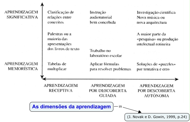 Este Cmap, tiene información relacionada con: Dimensões da Aprendizagem, As dimensões da aprendizagem in (J. Novak e D. Gowin, 1999, p.24)
