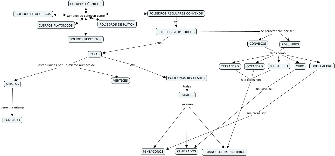 Este Cmap, tiene información relacionada con: poliedros regulares convexos en revision, SOLIDOS PERFECTOS tambien se conocen como CUERPOS PLATÓNICOS, IGUALES ya sean PENTAGONOS, REGULARES tales como OCTAEDRO, CONVEXOS tales como ICOSAEDRO, OCTAEDRO sus caras son TRIANGULOS EQUILATEROS, IGUALES ya sean TRIANGULOS EQUILATEROS, REGULARES tales como CUBO, CONVEXOS tales como TETRAEDRO, ICOSAEDRO sus caras son TRIANGULOS EQUILATEROS, CONVEXOS tales como CUBO, REGULARES tales como DODECAEDRO, POLIGONOS REGULARES todas IGUALES, CUERPOS GEÓMETRICOS sus CARAS, CUERPOS GEÓMETRICOS se caracterizan por ser REGULARES, ARISTAS tienen la misma LONGITUD, CARAS estan unidas por un mismo número de VERTICES, POLIEDROS REGULARES CONVEXOS son CUERPOS GEÓMETRICOS, IGUALES ya sean CUADRADOS, DODECAEDRO sus caras son PENTAGONOS, CONVEXOS tales como OCTAEDRO