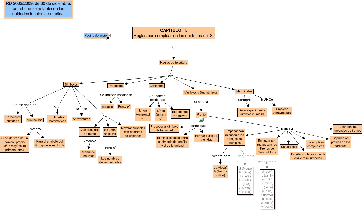 Este Cmap, tiene información relacionada con: CapÃtulo III_RD 2032_2009, Magnitudes NUNCA Emplear Abreviaturas, Productos Se indican mediante Punto (·), SÃmbolos NO son Abreviaturas, Prefijo NUNCA Escribir yuxtaposición de dos o más sÃmbolos, Van seguidas de punto Excepto Al final de una frase, Prefijo NUNCA Empezar con mayúscula los Prefjos de Submúltilpos, Empezar con minúscula los Prefijos de Múltiplos Excepto para da (deca) h (hecto) k (kilo), SÃmbolos Se escriben en Minúsculas, SÃmbolos NO Van seguidas de punto, SÃmbolos Se escriben en Caracteres romanos, Magnitudes Siempre Dejar espacio entre sÃmbolo y unidad, Se usan en plural Pero sà Los nombres de las unidades, SÃmbolos Son Entidades Matemáticas, Reglas de Escritura Para SÃmbolos, Empezar con mayúscula los Prefjos de Submúltilpos Por ejemplo d (deci) c (centi) m (mili) μ(micro) n (nano) p (pico) t (femto) a (atto) z (zepto) y (yocto), Prefijo NUNCA Se usa sólo, CAPÃ?TULO III: Reglas para emplear en las unidades del SI ???? Página de Inicio, Empezar con minúscula los Prefijos de Múltiplos Por ejemplo M (Mega) G (Giga) T (Tera) P (Peta) E (Exa) Z (Zetta) Y (Yotta), Prefijo Tiene que Preceder al sÃmbolo de la unidad, Reglas de Escritura Para Múltiplos y Submúltiplos