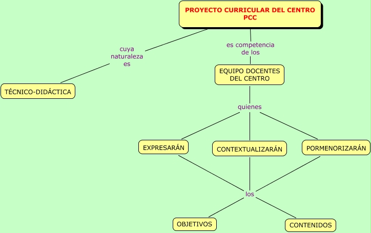 Este Cmap, tiene información relacionada con: PCC, EXPRESAR�N los OBJETIVOS, EQUIPO DOCENTES DEL CENTRO quienes PORMENORIZAR�N, EQUIPO DOCENTES DEL CENTRO quienes CONTEXTUALIZAR�N, PORMENORIZAR�N los CONTENIDOS, EQUIPO DOCENTES DEL CENTRO quienes EXPRESAR�N, PORMENORIZAR�N los OBJETIVOS, PROYECTO CURRICULAR DEL CENTRO PCC cuya naturaleza es TÉCNICO-DID�CTICA, PROYECTO CURRICULAR DEL CENTRO PCC es competencia de los EQUIPO DOCENTES DEL CENTRO, CONTEXTUALIZAR�N los OBJETIVOS, CONTEXTUALIZAR�N los CONTENIDOS, EXPRESAR�N los CONTENIDOS
