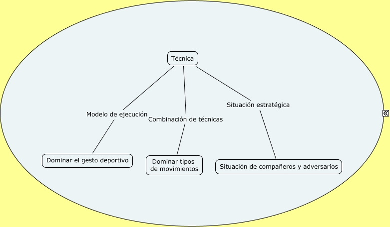 Este Cmap, tiene información relacionada con: TÉCNICA, Técnica Situación estratégica Situación de compañeros y adversarios, Técnica Combinación de técnicas Dominar tipos de movimientos, Técnica Modelo de ejecución Dominar el gesto deportivo