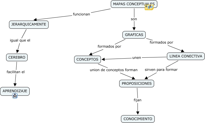 Este Cmap, tiene información relacionada con: MAPA CONCEPTUAL, MAPAS CONCEPTUALES son GRAFICAS, GRAFICAS formados por LINEA CONECTIVA, JERARQUICAMENTE igual que el CEREBRO, MAPAS CONCEPTUALES funcionan JERARQUICAMENTE, LINEA CONECTIVA sirven para formar PROPOSICIONES, LINEA CONECTIVA unen CONCEPTOS, CEREBRO facilitan el APRENDIZAJE, CONCEPTOS union de conceptos forman PROPOSICIONES, PROPOSICIONES fijan CONOCIMIENTO, GRAFICAS formados por CONCEPTOS
