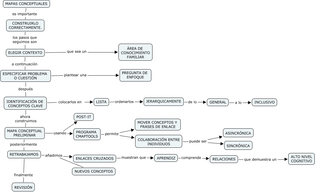 Este Cmap, tiene información relacionada con: CONSTRUCCION MAPA CONCEPTUAL ARTICULO NOVAK Aroa, ESPECIFICAR PROBLEMA O CUESTIÓN plantear una PREGUNTA DE ENFOQUE, JERARQUICAMENTE de lo GENERAL, PROGRAMA CMAPTOOLS permite MOVER CONCEPTOS Y FRASES DE ENLACE, MAPAS CONCEPTUALES es importante CONSTRUIRLO CORRECTAMENTE., ELEGIR CONTEXTO a continuación ESPECIFICAR PROBLEMA O CUESTIÓN, GENERAL a lo INCLUSIVO, PROGRAMA CMAPTOOLS permite COLABORACIÓN ENTRE INDIVIDUOS, LISTA ordenarlos JERARQUICAMENTE, RETRABAJAMOS añadimos ENLACES CRUZADOS, IDENTIFICACIÓN DE CONCEPTOS CLAVE ahora construimos MAPA CONCEPTUAL PRELIMINAR, MAPA CONCEPTUAL PRELIMINAR usando PROGRAMA CMAPTOOLS, COLABORACIÓN ENTRE INDIVIDUOS puede ser ASINCRÓNICA, IDENTIFICACIÓN DE CONCEPTOS CLAVE colocarlos en LISTA, ESPECIFICAR PROBLEMA O CUESTIÓN después IDENTIFICACIÓN DE CONCEPTOS CLAVE, MAPA CONCEPTUAL PRELIMINAR posteriormente RETRABAJAMOS, RELACIONES que demuestra un ALTO NIVEL COGNITIVO, RETRABAJAMOS finalmente REVISIÓN, COLABORACIÓN ENTRE INDIVIDUOS puede ser SINCRÓNICA, MAPA CONCEPTUAL PRELIMINAR usando POST-IT, RETRABAJAMOS añadimos NUEVOS CONCEPTOS